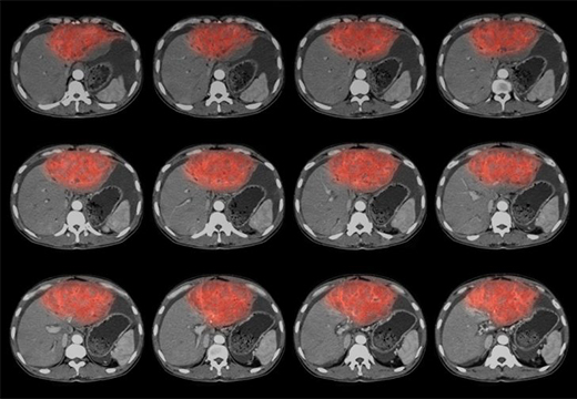 — отек по периферии проявляется как высокая интенсивность сигнала на T2-взвешенных изображениях и может быть идентифицирован в 35% абсцессов печени.