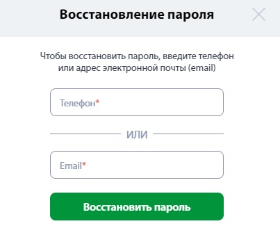 Если пользователь потерял пароль, нужно выбрать кнопку для входа в личный кабинет. На появившейся странице представлена не только форма для авторизации, но и ссылка «Забыли пароль». Для восстановления доступа достаточно ввести номер мобильного телефона или адрес электронной почты. Завершает процедуру клавиша «Восстановить пароль».