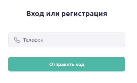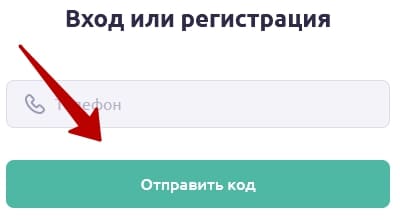 - Откроется окно регистрации/авторизации, где потребуется указать номер мобильного телефона в свободном поле регистрационной формы, а затем нажать «Отправить код».