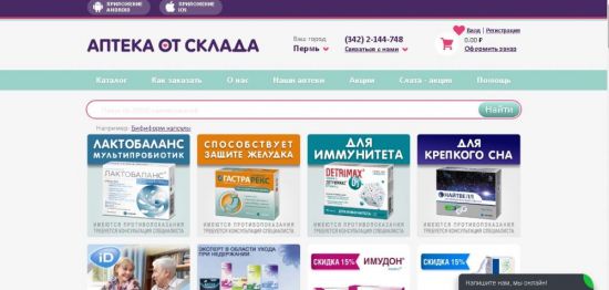 Аптека от Склада » интернет аптека, поиск лекарств, заказ…Каталог лекарств и БАДов, товаров медицинского назначения, косметики, диетических продуктов и пр. Онлайн-заказ. Адреса аптечных пунктов.