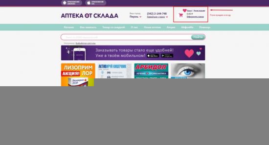 Как войти на сайт Аптека от склада?