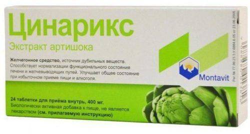 - Цинарикс. Комплексный препарат, назначаемый при заболеваниях печени и желчевыводящих путей. Допускается его кратковременный прием при диспепсических расстройствах (когда имеются выраженные симптомы расстройства желудочно-кишечного тракта).