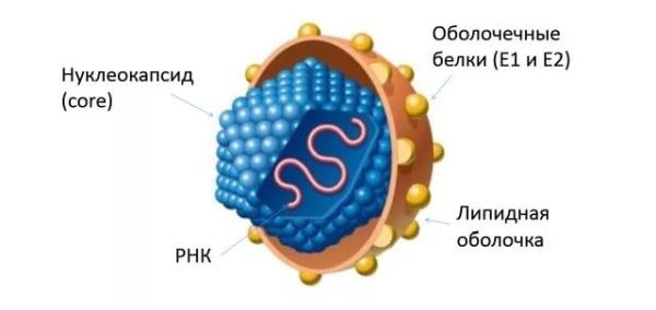 Возбудитель содержит внешнюю оболочку и внутреннее ядро: