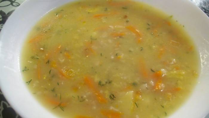 - вермишелевый суп с овощами и ложкой молока;