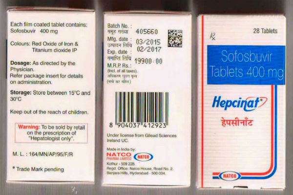 Natcopharma из Непала выпустила в продажу медикамент под названием Гепцинат-ЛП на основе софосбувира и ледипасвира. Лечение длится на протяжении 12 недель. Полный курс стоит 1500 долларов. Производители имеют лицензию и сертификаты качества препарата.