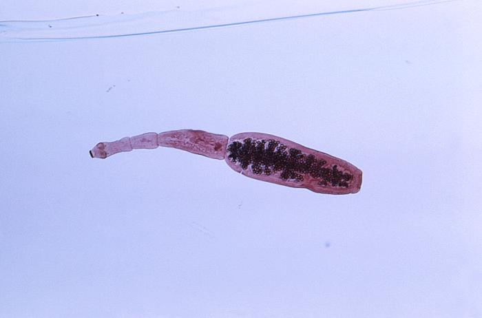 Жизненный цикл гельминта схож с возбудителем эхинококкоза.