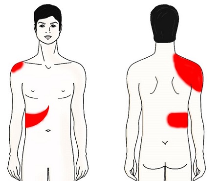 - незначительные режущие ощущения в правой стороне подреберья, отдающие в лопаточную область, плечевой сустав, руку;