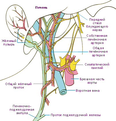 Печеночный проток играет роль транспортировщика биологического экссудата (желчи), в длине может достигать 4 см. Внутри пузыря может одновременно содержаться до 50 мл желчной субстанции. Когда наступает необходимость, происходит выброс желчи через малый проток. Стимулирует выброс жидкости сигнал, передающийся по нервным волокнам пищеварительной системой в момент поступления в пищевод продуктов питания. Выделительный проток принято называть проточно-поджелудочной ампулой.