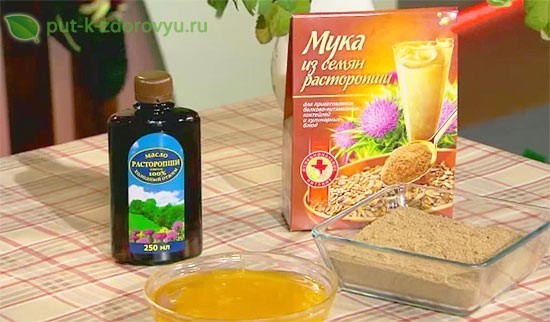 Муку, как и шрот из семени молочного чертополоха стоит применять для восстановления и очищения клеток печени. В сочетании с маслом расторопши данные средства способны приостановить развитие гепатитов, что далеко не всегда по силам некоторым фармпрепаратам.