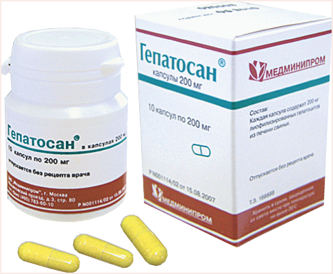 В качестве медикаментозного лечения назначается Гепатосан в дозировке 2 капсулы 3 раза в сутки. Принимают таблетки перед едой и выжидают 15 минут после их приема. Курс лечения составляет от 30 до 40 дней в зависимости от индивидуальных особенностей заболевания.