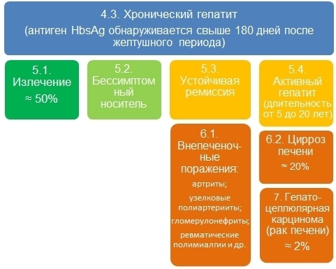 Людей, у которых антиген обнаружен в крови спустя 3 месяца, относят к группе вирусоносителей. Примерно 5% переболевших гепатитом Б, становятся носителями инфекционного заболевания. Часть из них будет заразна до конца жизни.