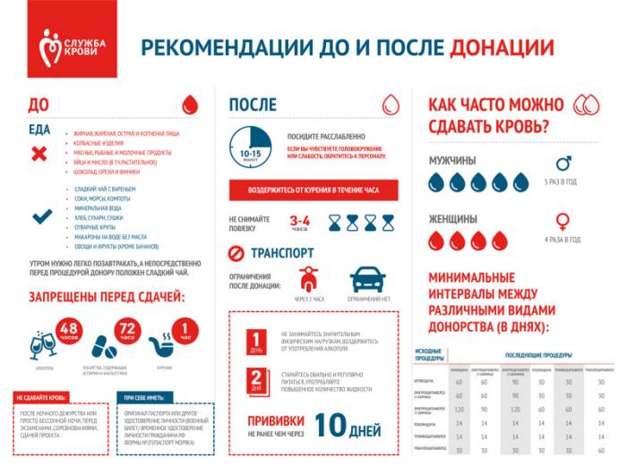 - Отдых в течение 20 минут непосредственно перед сдачей крови.