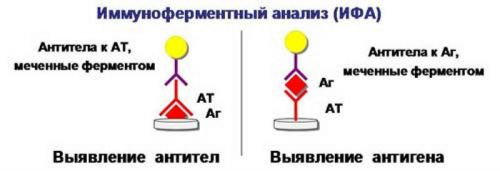 Для первичного выявления антител в лабораториях могут использоваться скрининговые тестовые системы или иммуноферментный метод (ИФА). Его суть: возможность зафиксировать и количественно определить специфическую реакцию антиген+антитело при участии особых меченых ферментных систем.