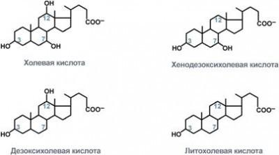 Количественно и качественно изменяет желчь: увеличивается объем секретируемой желчи с повышением концентрации конъюгированных желчных кислот, снижается соотношение триоксихолевых и диоксихолевых желчных кислот, повышается концентрация гликохолевой кислоты по сравнению с таурохолевой, концентрация фосфолипидов увеличивается.