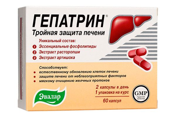 Биологически активная добавка, действующими веществами которой выступают экстракты расторопши, артишока и витаминный комплекс. Защищает печень, очищает и снижает уровень интоксикации, восстанавливает поврежденные клетки и функции. Гепатрин обладает желчегонным действием, способствует обогащению органа эссенциальными фосфолипидами. Препарат имеет несколько форм выпуска: капсулы и флаконы.