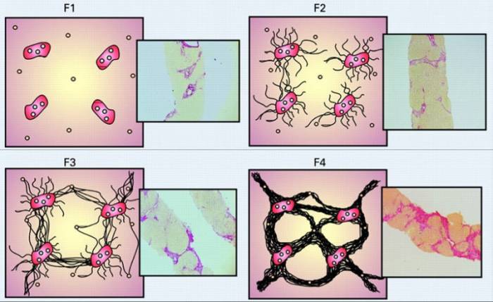 Для оценки результатов используется специальная шкала, наиболее популярна шкала METAVIR с четырьмя стадиями фиброза и четырьмя степенями активности. Другие шкалы, например, шкала K.Ishak, R.Knodell и J.Ludwig, используются более редко.