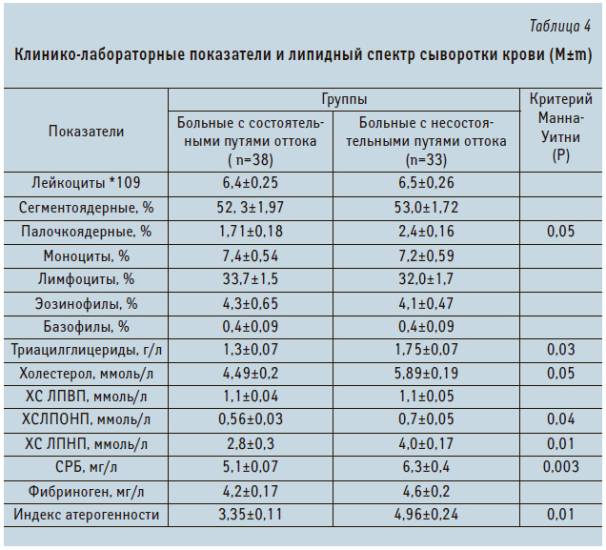 Таблица с расшифровкой результатов анализов
