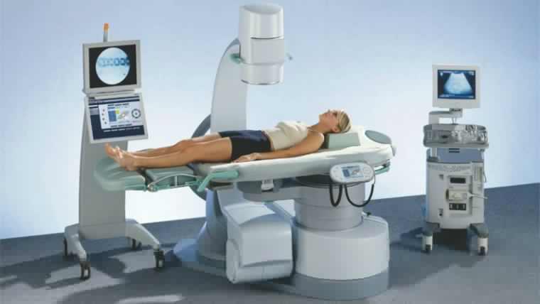 Механическое разрушение конкрементов осуществляется посредством экстракорпоральной ударно-волновой литотрипсии. Нередко применяется перед назначением медикаментозного растворения каменистых образований. Принцип метода основан на использовании ультразвуковой волны, под действием которой конкременты распадаются на камешки мелкой фракции. С той же целью может использоваться лазер. Показания к проведению процедуры: