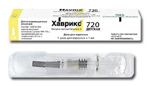 Опыт применения: В клинических исследованиях Хаврикса, в которые были включены лица в возрасте от 1 года до 18 лет, образование антител к антигену вируса гепатита А было выявлено более, чем у 93% вакцинированных на 15 сутки и у 99% – через 1 месяц после введения одной дозы вакцины (содержащей 720 ед. ELISA). В ходе клинических исследований было показано, что применение вакцины Хаврикс эффективно в раннем инкубационном периоде заболевания, в т.ч. во время вспышек и при очагах инфекции в семье. Эффективность вакцины Хаврикс была оценена во время вспышек заболевания, поражавших большие группы населения (Аляска, Словакия, США, Великобритания, Израиль, Италия), а также в семейных очагах и организованных детских коллективах. Эти исследования показали, что вакцинация Хаврикс привела к прекращению вспышек. При охвате прививками не менее 80% восприимчивого контингента, купирование вспышки заболевания достигается в течение 4-8 недель. Имеется опыт массового применения вакцины у детей в возрасте до 12 месяцев. Зарегистрирована в России с 1995 года.