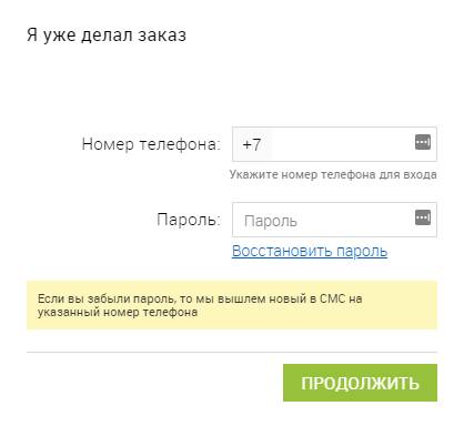 Введите свой логин и пароль, зарегистрированные при оформлении заказа, в соответствующие поля.