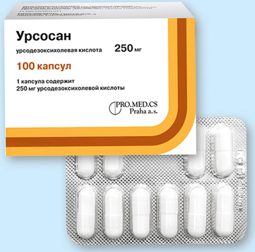 Урсосан — чешский препарат – относится к гепатопротекторам, выпускается в двух видах: капсулы по 500 мг и таблетки по 250 мг. Может возникнуть трудности при глотании капсул из?за их большого размера. Урсосан побочных эффектов практически не вызывает. После начала приема, положительный эффект появляется через несколько недель, пациенты замечают уменьшение боли, улучшение пищеварения. ??з побочных эффектов отмечаются чаще всего проблемы со стулом и болезненность в первые дни приёма.