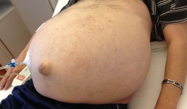 Количество жидкости в животе становится настолько большим, что уже визуально определить диагноз не составляет труда. Она сдавливает органы настолько, что начинаются перебои в их работе.
