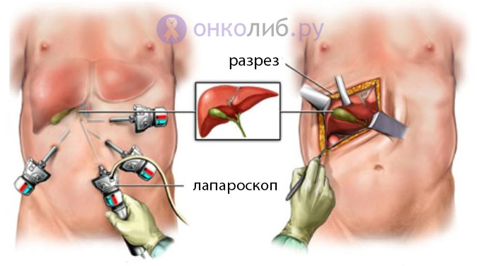 слева – лапароскопический метод, справа – открытая холецистэктомия
