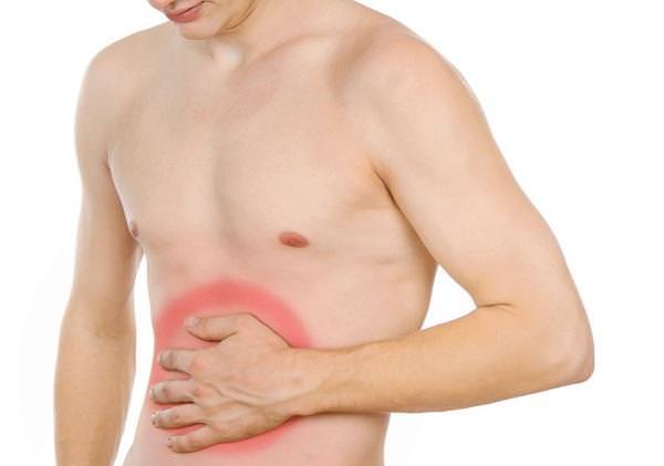 - Боль.Она локализуется справа под рёберной дугой, имеет тупой или схваткоподобный характер. В большинстве случаев возникает периодически, когда пациент употребляет алкоголь, жирную или острую пищу, переживает сильный стресс.Развивается болевой синдром вследствие перерастяжения стенок пузыря при застое желчи или при нарушении сократительной функции органа.