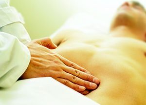 - тщательный физикальный осмотр, предполагающий пальпацию и перкуссию передней стенки брюшной полости, оценивание состояния внешнего вида и кожи пациента, а также измерение температурных показателей;