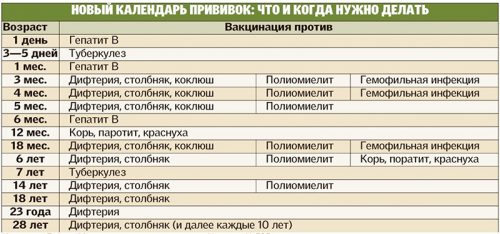 | 5. | Дети 3 месяца | Первая вакцинация против дифтерии, коклюша, столбняка |
