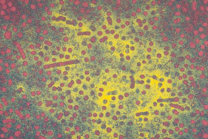 Электронно-микроскопическое изображение вируса гепатита В (HBV)