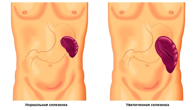 - острые вирусные и бактериальные инфекции увеличивают объем селезенки;