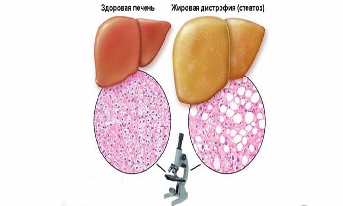 - ожирение печени, независимо от природы его происхождения;