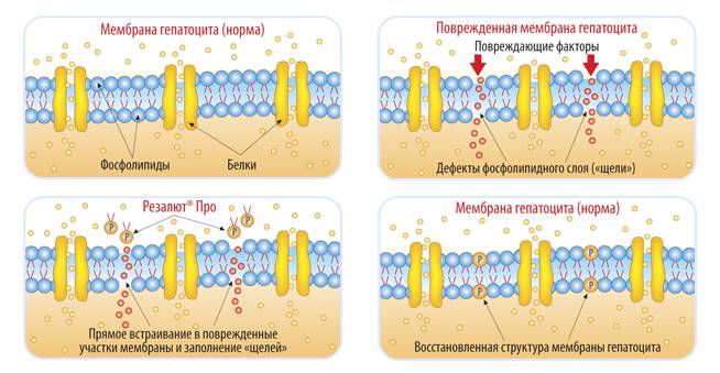 Воздействие Резалюта на мембрану гепатоцита