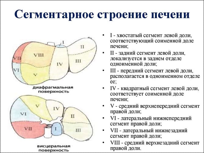 Деление печени на сегменты помогает докторам во время проведения ультразвукового осмотра (или с помощью другой методики) данного органа.