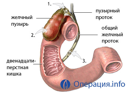 - Отделение и извлечение пузыря, обработку ложа органа;