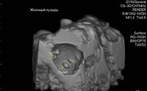Если у больного возникла желчнокаменная болезнь, то в полости органа проявляются образования. При этом наблюдается утолщенность стенок органа и нечеткое очертание.