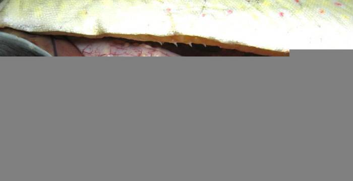 В области жабр также наблюдаются незначительные изменения тканей и чешуи.