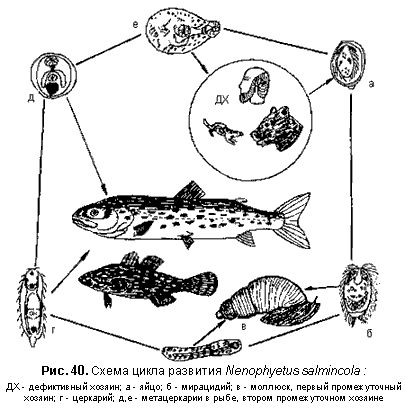 Конечным хозяином являются птицы. Заражение происходит по схеме: птица — моллюск — рыба.