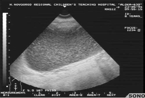 При проведении УЗИ осадок похож на хлопья. Он меняет локализацию в мочевом пузыре при смене положения тела. Характерное расположение – возле задней стенки органа. Частицы имеют повышенную эхогенность и их четко видно в просвете. Они могут образовывать скопления. При запущенном воспалительном процессе из крови и слизи образуются гипо- и гиперэхогенные структуры. Эховзвесь может крепиться к стенкам органа. На стадии разжижения, сгустки становятся анэхогенными и создают неровный контур.