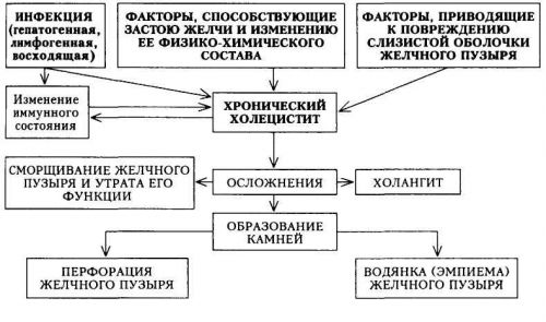 - Загустение жёлчной жидкости из-за нарушения её химического состава (может возрасти содержание солей или холестерина, обычно это приводит к образованию конкрементов и провоцирует развитие холелитиаза).