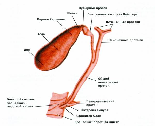 Строение здорового пузыря желчного и желчевыводящих путей